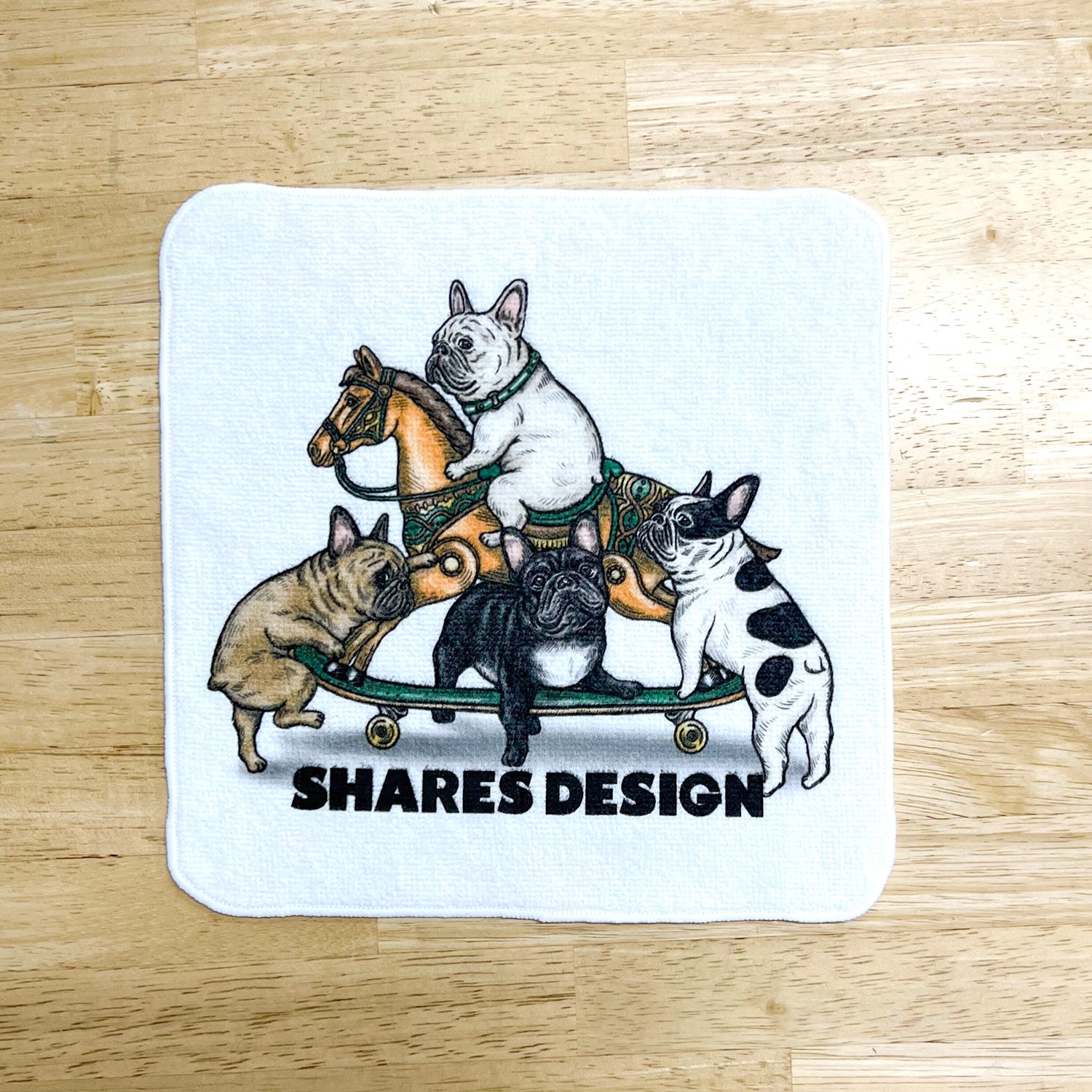 フレンチブルドッグたちが乗り込む姿を表現しました。