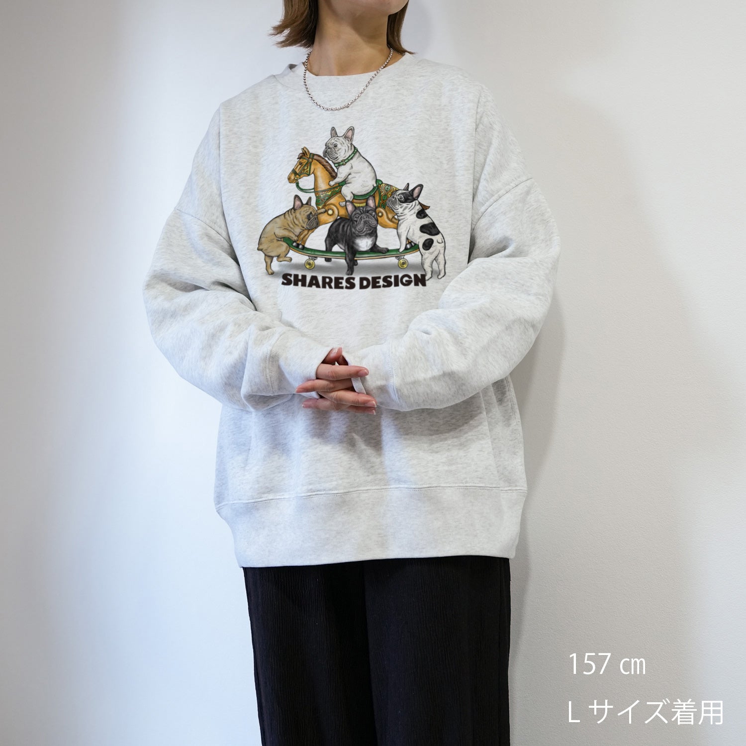 ドロップショルダーのオーバーサイズシルエットなので