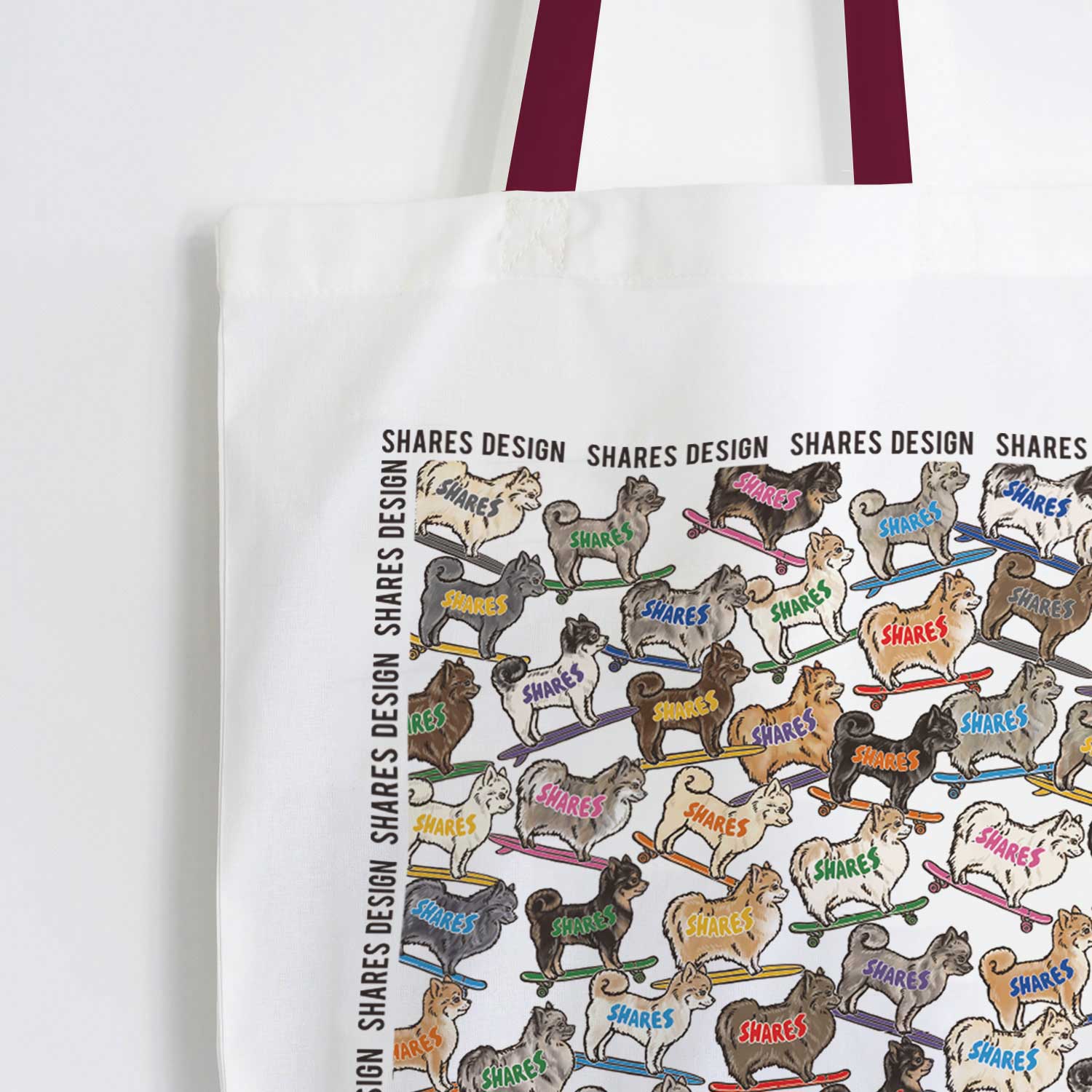 ポメラニアン好きにはたまらない総柄デザインのトートバッグが登場!サマーカット&ロングカットの全16毛色のポメラニアンを総柄にデザインしました。