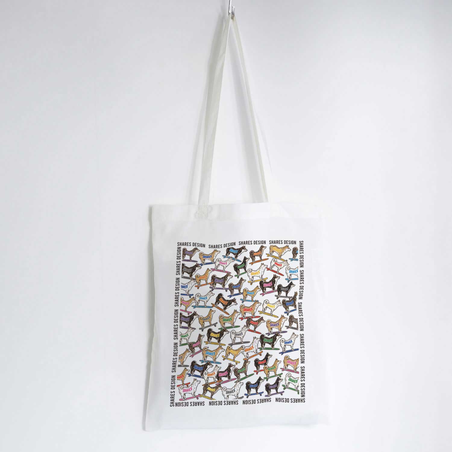 柴犬好きにはたまらない総柄デザインのトートバッグが登場!柴犬と豆柴の全4毛色を総柄にデザインしました。