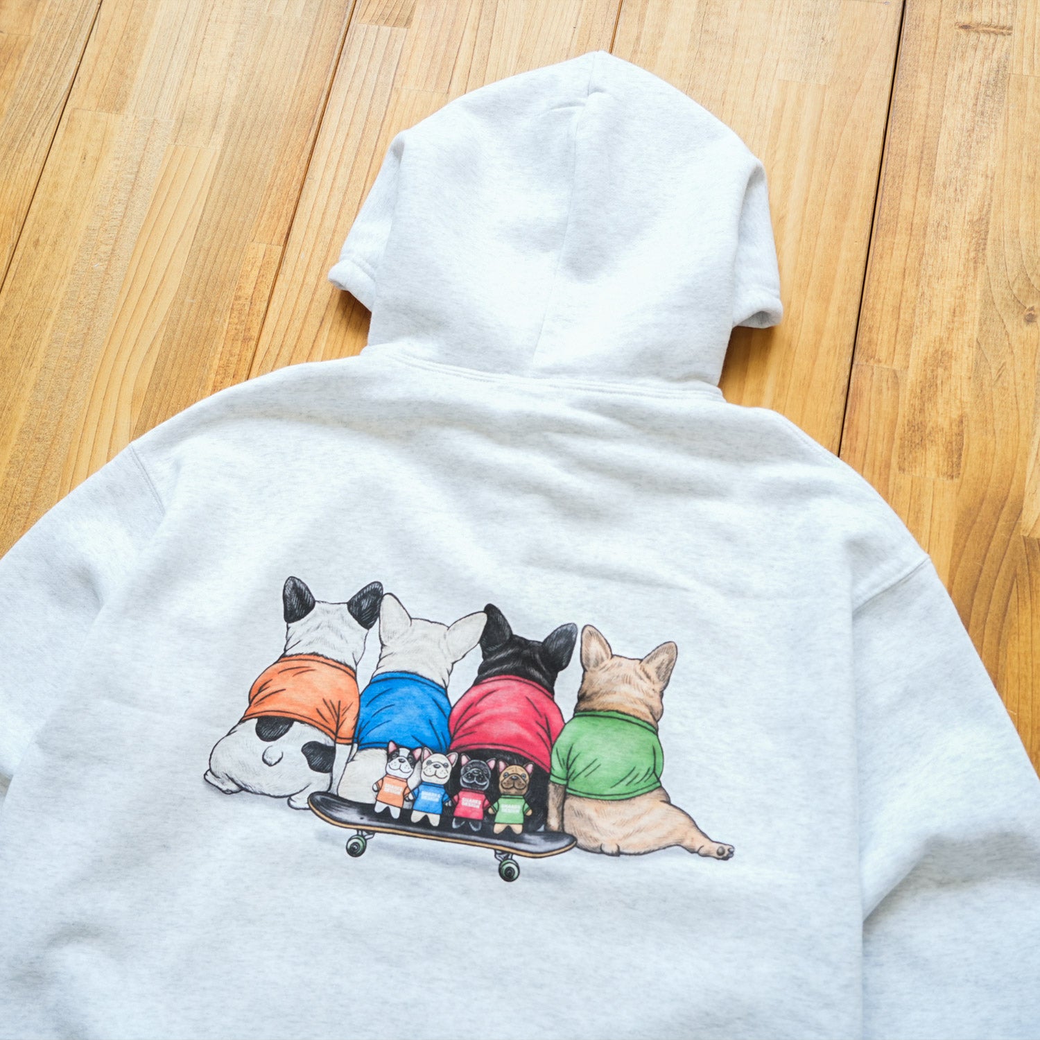 販売中の犬用Tシャツともお揃いのデザインで着用いただけますので、フレブルたちとの特別な時間をゆったりとお楽しみください。